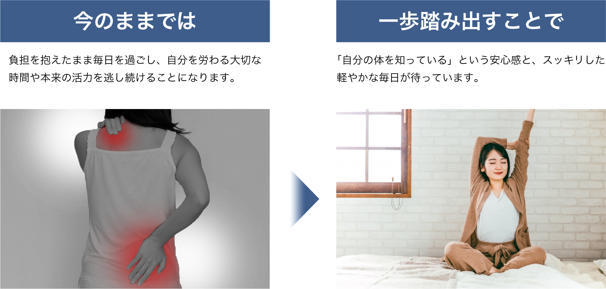 お悩みに応じて、お体の状態や感じ方をしっかり把握し、最適な施術をご提案します。